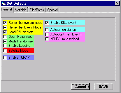LOAD P/L ON START- Selecting this option pre-loads whatever files were in the playlist at program close. The play index for this playlist is also remembered (if other than RANDOM).