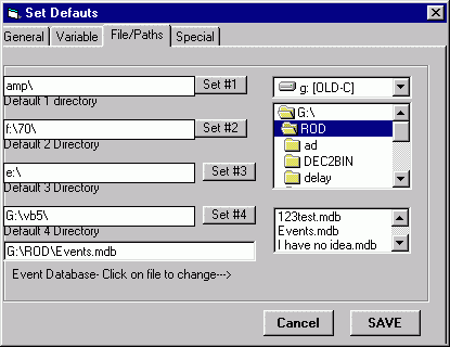 Event Database - You can select an alternate event database file. The default is EVENTS.MDB